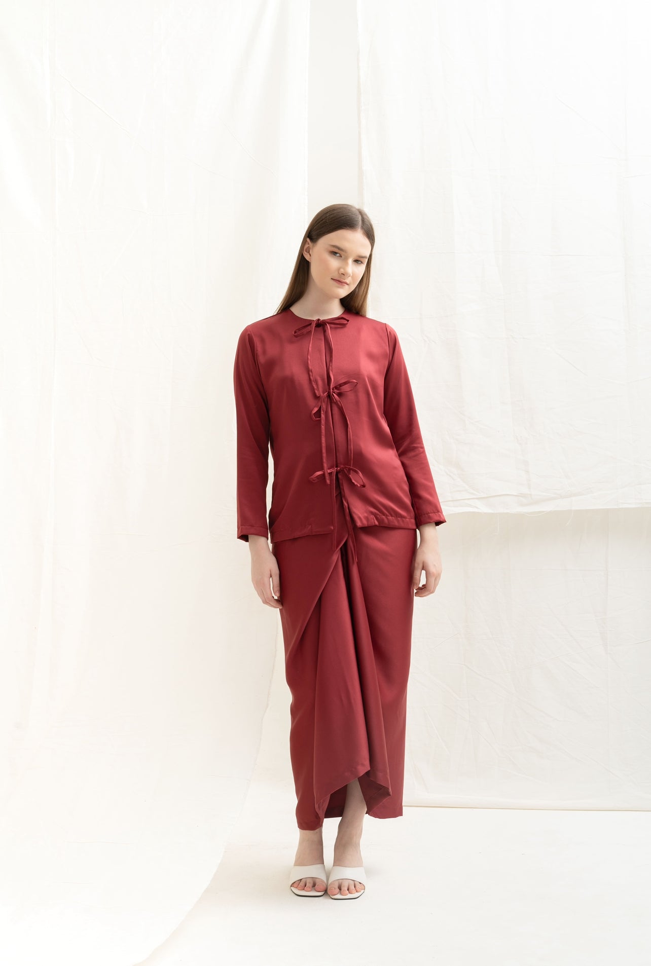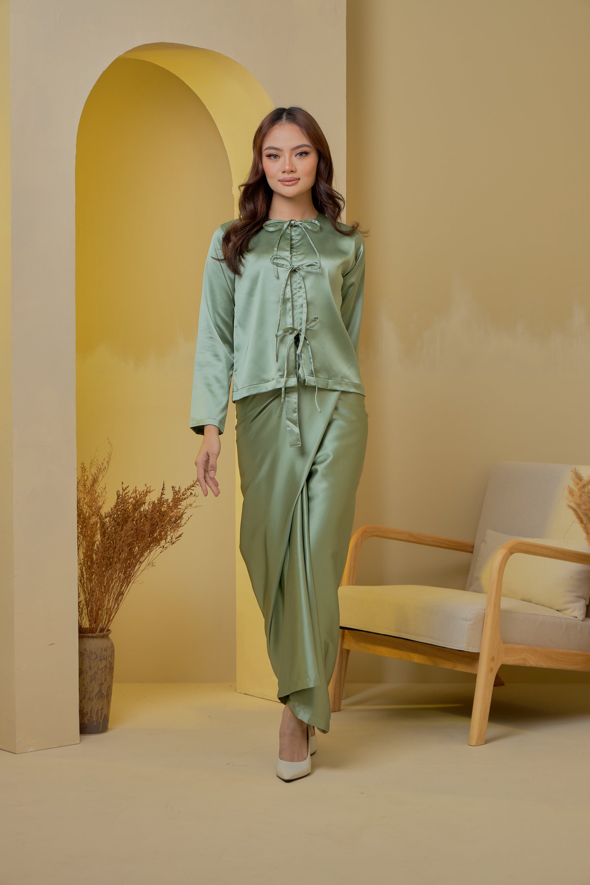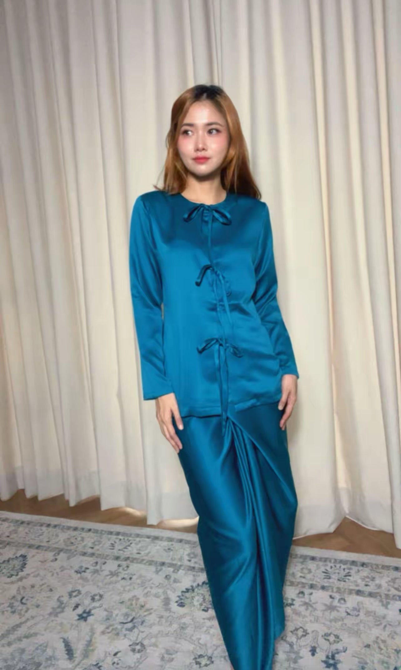 A stylish ribbon kurung penned with semi instant patio to create more stylish yet elegant look for Hari Raya!